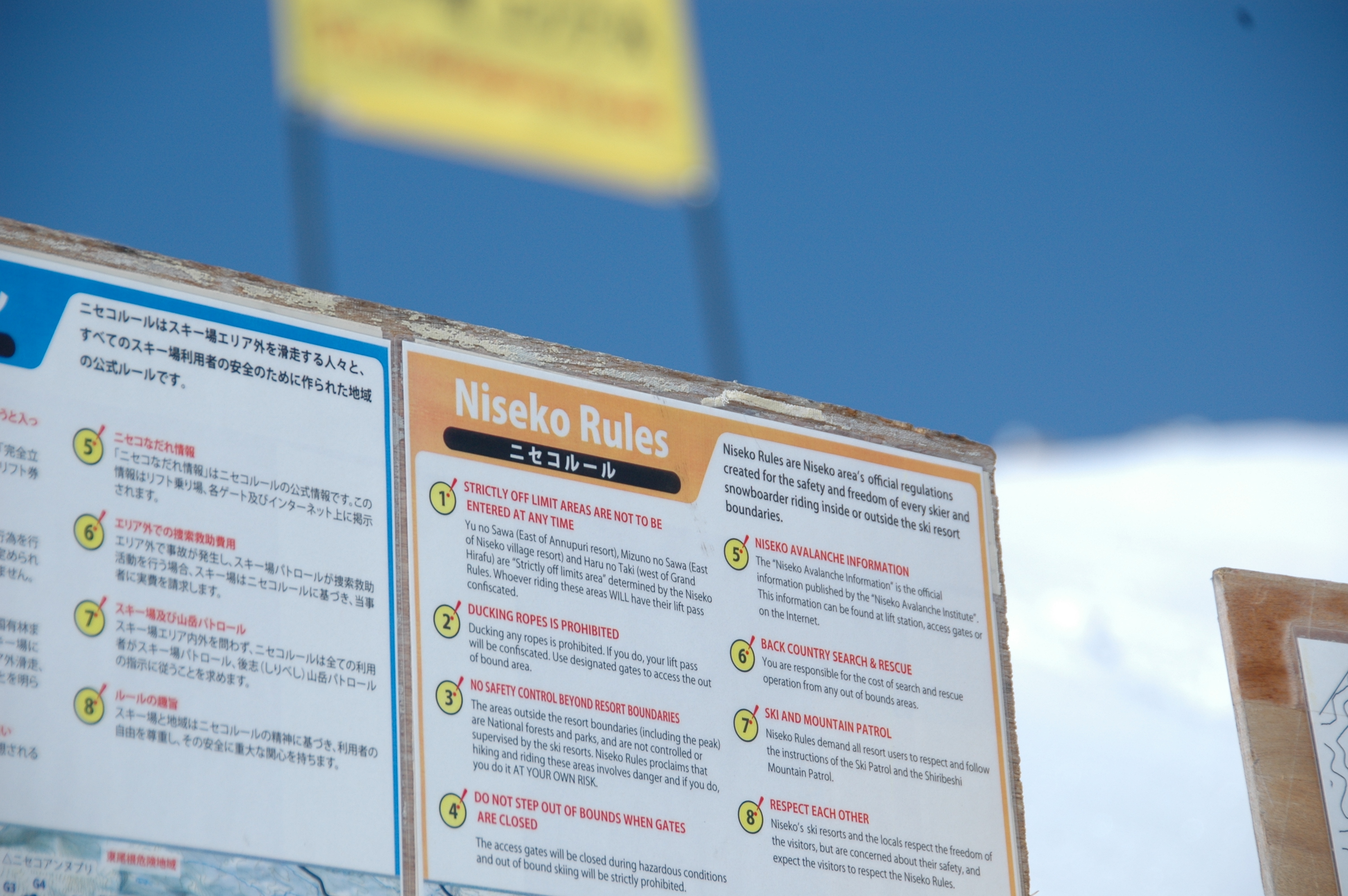 スキー場を利用して楽しむ限り、どんな優れた技術と知識、経験を持つ人でも滑走の自由はルールによって制限されます。ニセコルールは滑り手の意見も反映され何年も議論を重ねたものです、ルールを厳格に守ってもなお十分に素晴らしい滑走体験ができるのがニセコの自然の懐の深さでもあります。